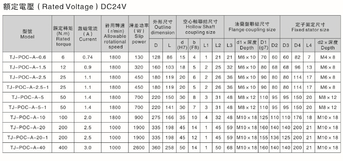 【臺灣天機】空心軸磁粉離合器(外殼旋轉(zhuǎn)式)使用DC24V,法蘭盤輸入、空心軸輸出、空心軸支撐、外殼旋轉(zhuǎn)。適用于印刷機械、包裝機械、化工機械、食品機械等行業(yè)機械傳動系統(tǒng),如收卷、轉(zhuǎn)矩控制、負載、檢測等。采用進口磁粉、進口軸承,在正常情況下,磁粉使用壽命可達5000~8000小時。為了延長鐵粉的壽命,使用時讓容許滑動工作率較為充裕也是一種方式。例如,以容許滑動工作率的50%來使用的話,壽命約可延長為雙倍。