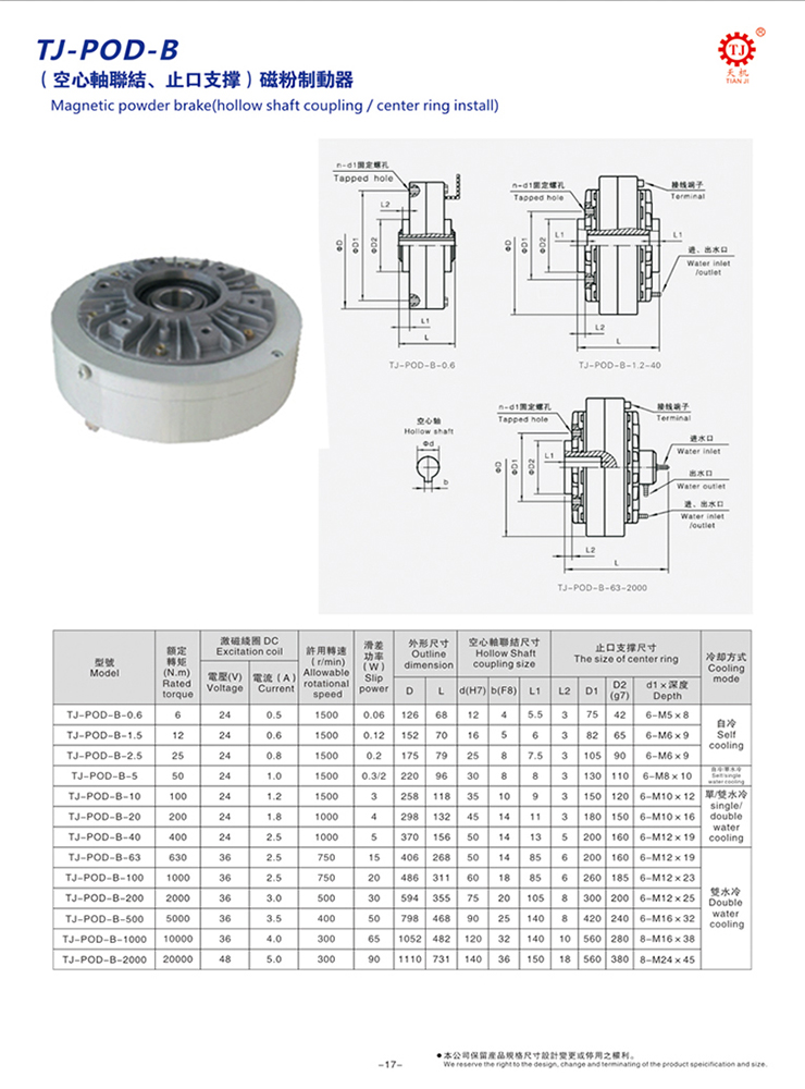 • 內(nèi)殼旋轉(zhuǎn)、空心軸磁粉制動器TJ-POD-B