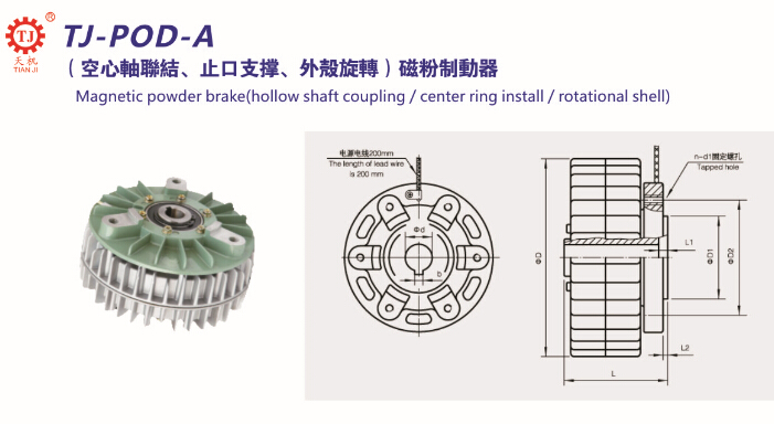 【臺(tái)灣天機(jī)】TJ-POD-A磁粉剎車器為外殼旋轉(zhuǎn)式空心軸制動(dòng)器,其散熱方式為自然冷卻式,旋轉(zhuǎn)外圍以提高散熱性能,提高了熱容量的機(jī)型,5r/min起可供使用。廣泛應(yīng)用于造紙、印刷、 塑料、橡膠、紡織、印染、電線電纜、冶金以及其他有關(guān)卷取加工行業(yè)中起放卷和收卷張力控制作用。另外磁粉離合器還可用于緩沖起動(dòng)、過(guò)載保護(hù)、調(diào)速等,還經(jīng)常被用于傳動(dòng)機(jī)械的測(cè)功加載和制動(dòng)等。