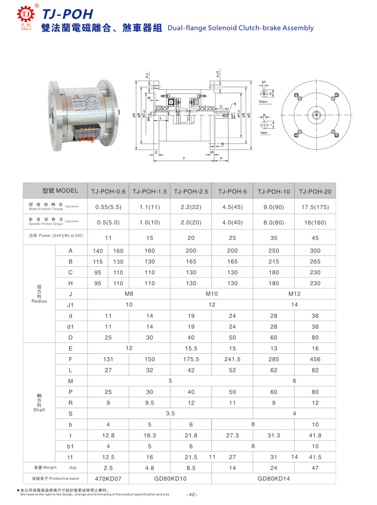 雙法蘭式電磁離合剎車器組尺寸規(guī)格如下: