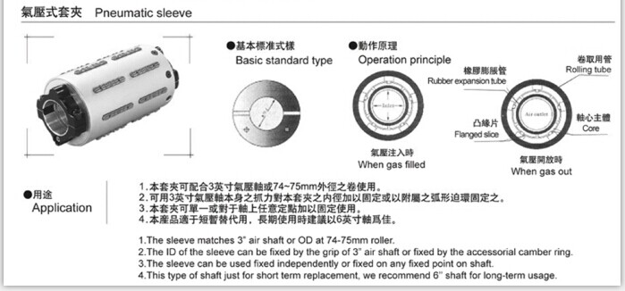 2.紙管放置簡單:以充氣與放氣的動作,可移動及固定紙管在軸面上的任何一個位置。