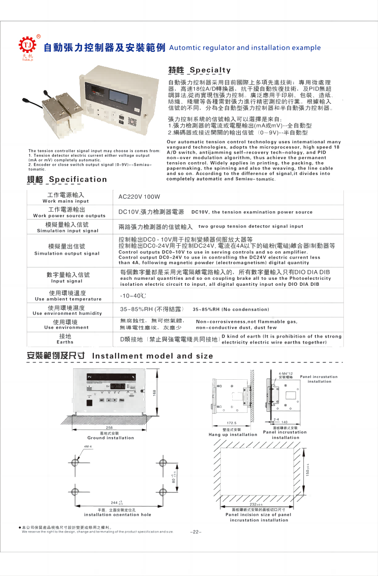 ST張力控制器,全自動(dòng)張力...產(chǎn)品簡(jiǎn)介: 【臺(tái)灣天機(jī)牌】ST張力控制器,...